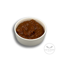 Gehaktbal in plakjes , saus naar keuze , ijsbergsla.